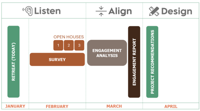 We want to hear from you! The project team and City staff will host a series of in-person open houses and an online survey throughout February. The open houses will be held at three (3) different locations and times to capture comments from a variety of residents. An online survey will be available for residents who cannot attend in-person. The feedback from residents will then inform the project team as they develop a conceptual design and recommendations for the Trailhead Plaza. Please take the survey, and find ways to participate in this next phase.